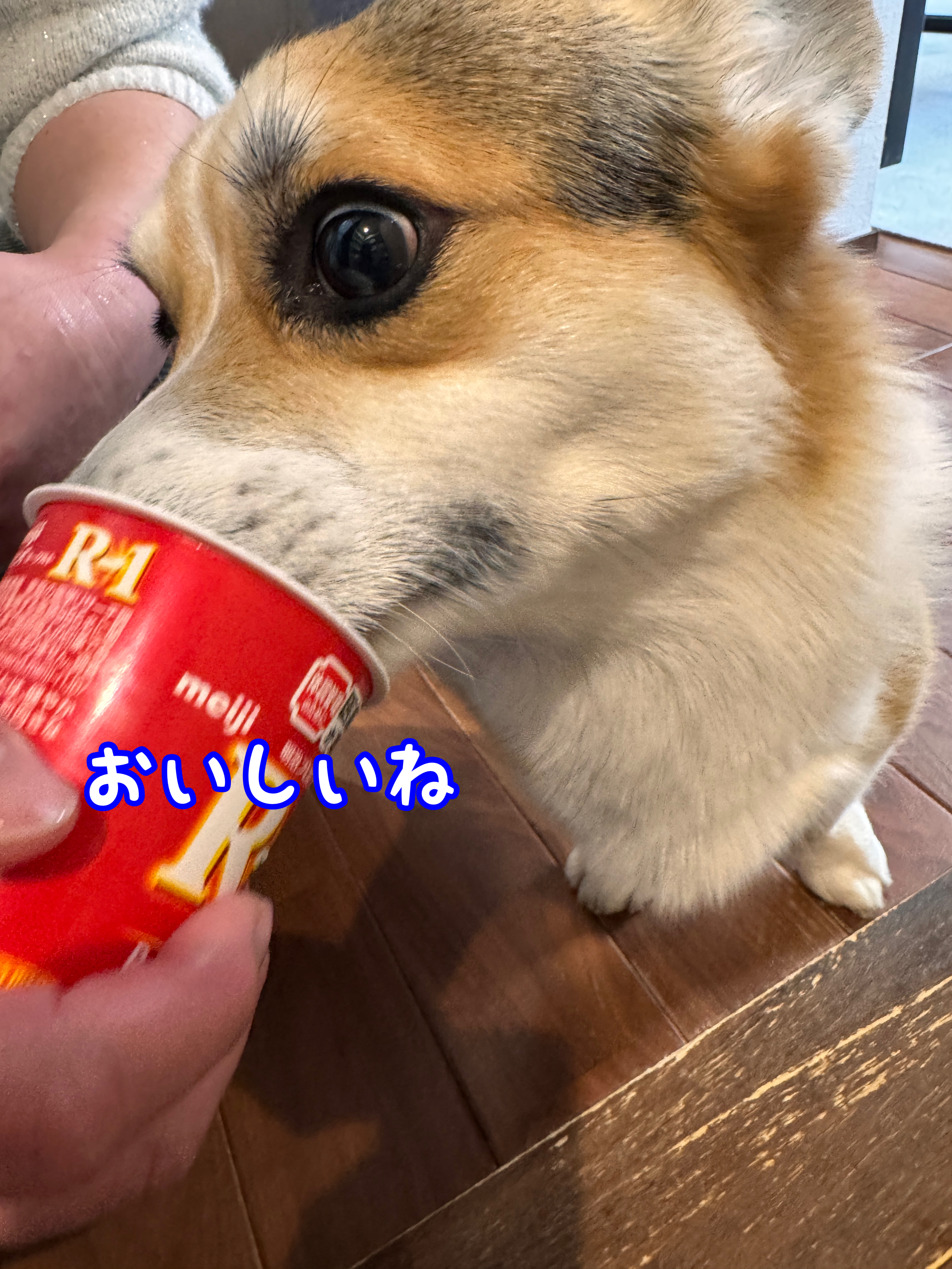 先日の事。 2ぴきにデザート😁 てんてんは… お鼻を、 ずぼっ。 真剣な表情😁 ···
